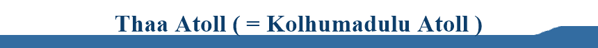 Das Thaa Atoll ( Verwaltungsbezirk Kolhumadulu ) ist ein Teil der westlichen Malediven Inseln in der Lakkadivensee. Seine Ausdehnung beträgt ca. 55 x 45 Kilometer und es befinden sich dort 66 Inseln von denen allerdings nur wenige ganzjährig bewohnt sind. Die Hauptinsel des Thaa Atolles nennt sich Veymandoo und Maalifushi by COMO ist das einzige zur Zeit bestehendeTouristenresort in diesem einsamen Teil der Malediven.